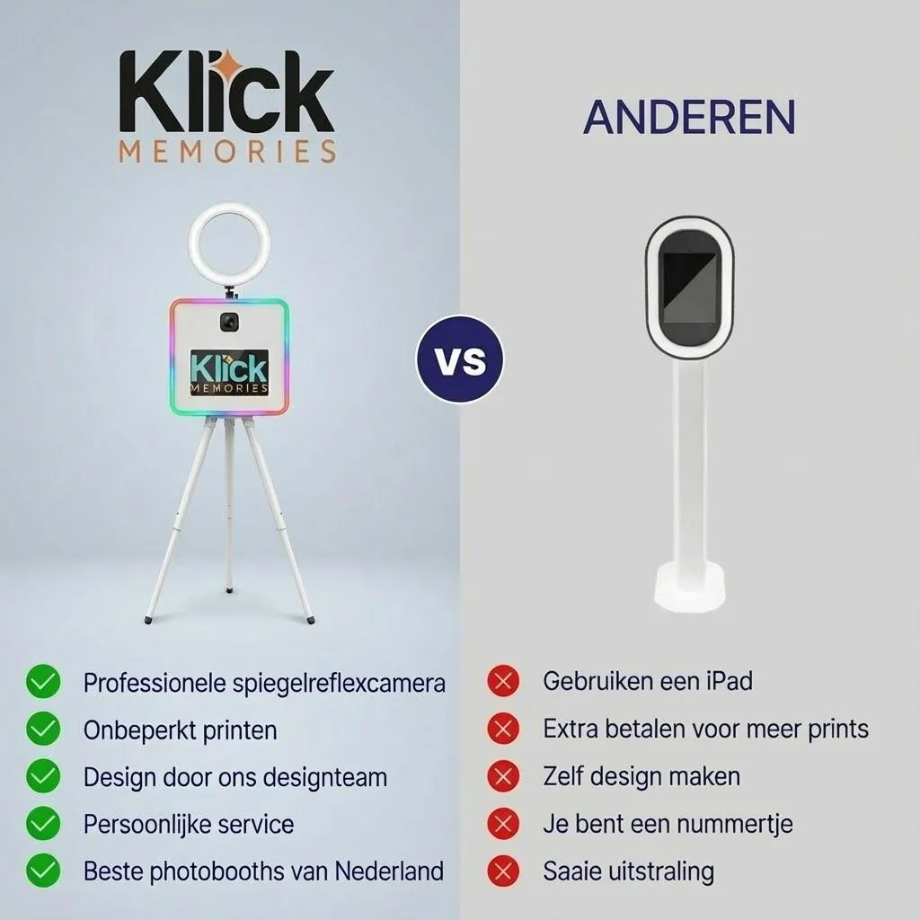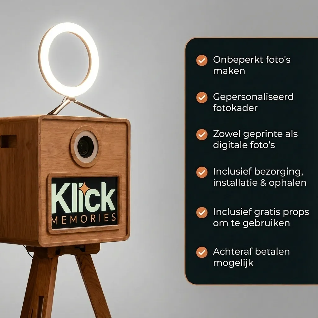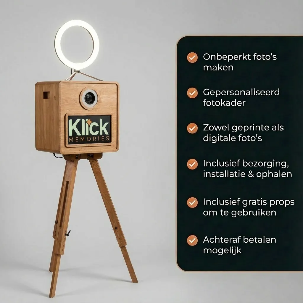Een photobooth huren doe je eenvoudig en snel via Klick Memories.